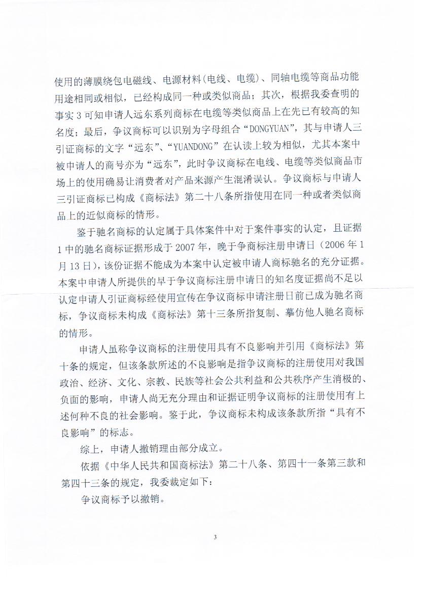 裁定 商标评审委员会经过审理双方提供的理由与证据材料,裁定5115979号商标予以撤销注册,维护远东电缆有限公司合法权益. 案件点评 在系争商标申请日2006年1月13日,远东电缆有限公司的商标就具有非常高的知名度,且系争商标的商标指定的商品与远东电缆有限公司的商标指定商品一样,所以评审委员会接受了我司的争议理由.